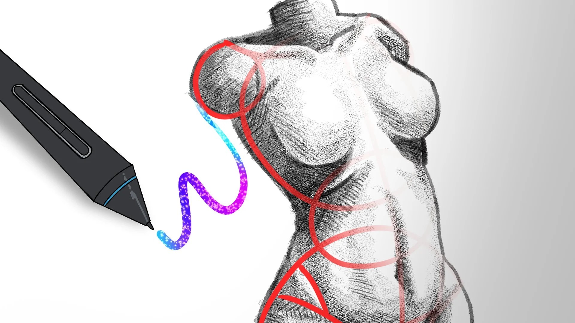 胴体のワイヤーを描く練習 : Drawing Practice Torso - Female Torso Drawings